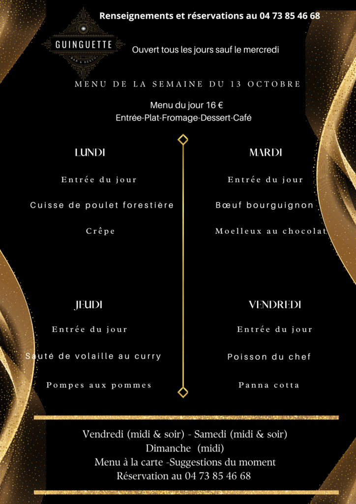 Bienvenue dans un voyage culinaire d’exception ! Notre menu fusionne créativité et tradition pour éveiller vos papilles. Des saveurs fraîches, des produits locaux, chaque plat est une invitation à l’exploration culinaire. Emportez également les délices de notre cuisine chez vous avec notre service de vente à emporter. Bon appétit ! 🍽️